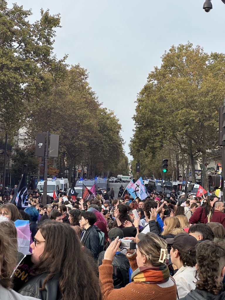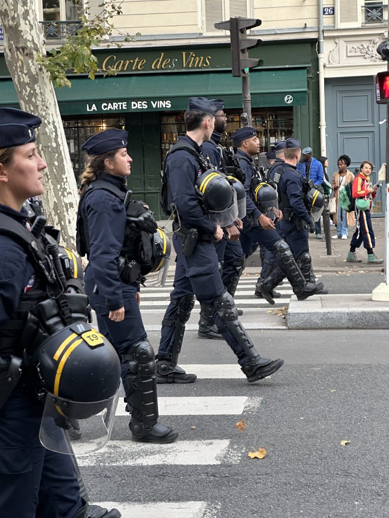 Thousands of people come out for these marches. The police presence is rarely required. The smashing of windows and the setting of fires is not done by the marchers – but by a small group of anarchists who use demonstrations as an opportunity to destroy anything they can. Like most of the others that happen regularly in Paris, this one ends peacefully. But police are always nearby.
